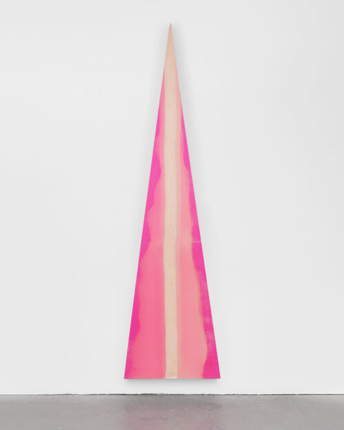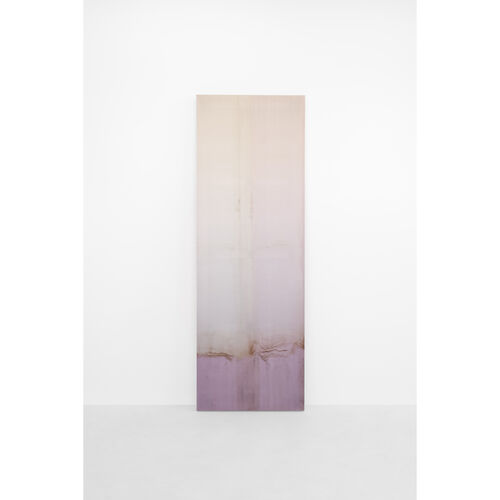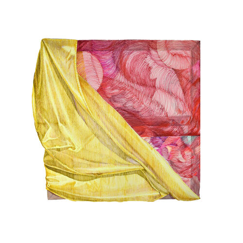Sometimes, it can take up to two years to create a single work, but the result is well worth the wait. For example, one of these works, Diamond In The Back (2022), is a triangular sculpture in pale pink and cream. Perkins innovatively uses material here, exposing the silk to elements such as sun, sand, salt, wind, wood, and water from various parts of the ocean to create a beautiful ombre of pastels and fuchsias. Similarly, his work Nasturtium (Fire Island, New York) (2018) uses a slightly different color palette of pale greens and yellows. This piece also has a corresponding airy feel, and Perkins’s distinctive technique is immediately apparent.