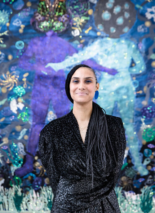 With a diverse array of media, Alisa Sikelianos-Carter reimagines traditional folklore and Black history by creating dynamic, glitter-encrusted images.