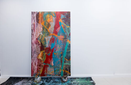 Savannah Marie Harris gives her abstract canvases time to breathe, rest, grow, and decay. “I have a moment with each and then forget about them; hiding them in a corner in my studio,” she explained in a recent interview with Artsy. Her dazzling, layered abstractions emerge through a process she likens to geological expressions of the Earth, like rock formation and erosion.