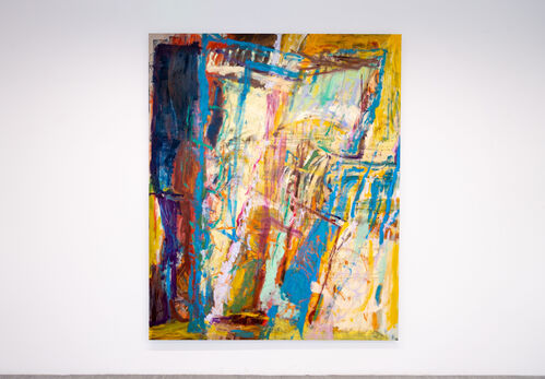 “It evolved naturally, picking and choosing what I want to be revealed and what to disguise,” Harris reflected. “I move between working with a light touch to applying thickly, really aggressively. It’s all about this ongoing tension suspended over time. Initially the colors I choose are quite bright, but over time they become muted with the debris of paint building onto the surface.” Eventually, intuitively, she stops, “when it all makes sense.”