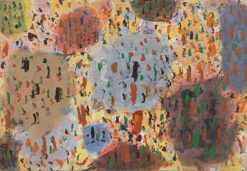 Along with a selection of sketchbooks, these early pieces illustrate how drawing became a way for Whitney to work out his ideas, a lesson he imparted in his students during his decades of teaching. “I was so in debt to [lower Manhattan art supply store] Pearl Paint that I realized I should try figuring things out in drawing,” he said. Later in his career, drawing also became a way to fulfill his need to create gestures as his painting moved away from gestural composition in the early 2000s.