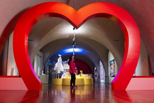The show traces the evolution of cute culture from the 18th century to today, often referencing the U.K, the U.S., and East Asia as key exponents. There is, for example, a shrine to the iconic cute cat (complete with a disco and collection of plushies on loan from a Hello Kitty superfan), as well as many approaches to cuteness that are less on-the-nose, and even become ominous, often in works by contemporary artists.