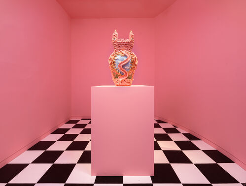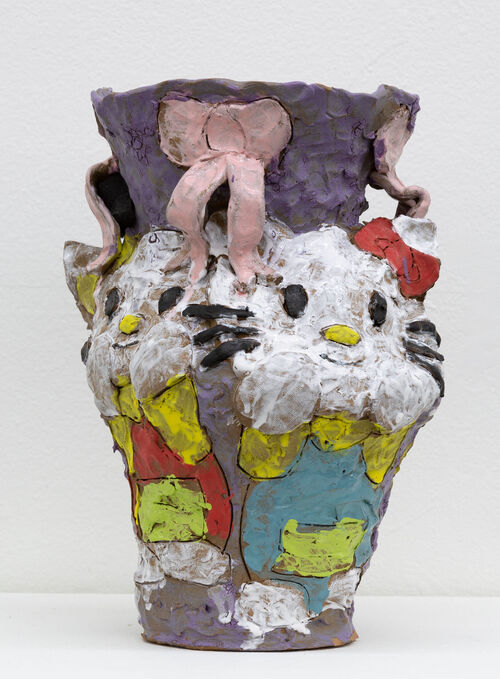 It’s not the only show exploring the ways cuteness has infiltrated our world. At The Aldrich Contemporary Art Museum in Connecticut, Yvette Mayorga’s “Dreaming of You” has visitors salivating over saccharine pink paint applied like icing. Meanwhile, Emily Yong Beck presented two solo exhibitions of her ceramic jars last year—each vessel paying tribute to well-known cute icons like Hello Kitty and Sailor Moon.