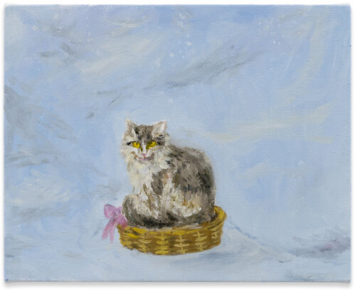 For the generation of artists born in the 1990s and raised on video games like The Sims, manga, and anime aesthetics, cuteness is often about escapism and utopian world-building that gestures to their youth. At Somerset House, British musician and artist Hannah Diamond has created Perfect Dream (2024), an installation that presents a kind of sonic tribute to a girls’ sleepover, inviting audiences to engage in “collective dreaming” on pink floor cushions. Meanwhile, Techo Statue (original blue) (2018) by American artist Bunny Rogers is a steel, cement, and styrofoam sculpture of a lacquered lizard-like creature based on online pets Rogers created as a child.