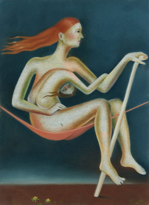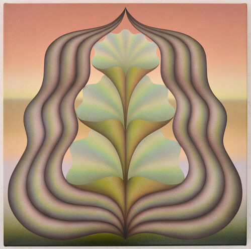 This acrylic work, Splinter (2024), is exemplary of the artist’s signature style, fusing surrealistic elements with the natural world. “We couldn’t be more thrilled to have this as part of the auction,” said Rob. “There’s this almost alien femininity to her work that feels hyper-contemporary, but then also kind of ancient in a way. I think that the way that she does these gradients—it feels familiar yet alien at the same time.”