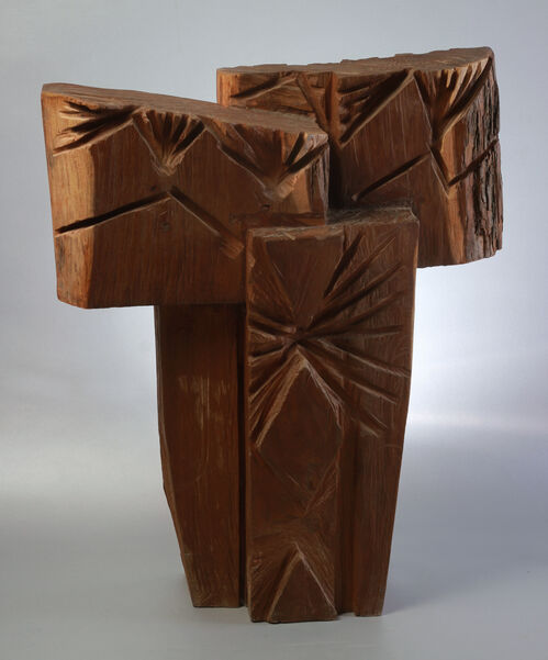 In Seoul, Kim worked as a professor at Sangmyung University until she received an invitation from her niece living in Argentina in the early 1980s. Upon arriving, she immediately felt captivated by the country. “The first thing that captured my attention was the beautiful horizon. The land and sky were flat. Secondly, the people were kind and gentle. Thirdly, there were trees, thick and lush trees,” she said. By this time, wood had become integral to her practice, and in Korea, the forests were thin after the war. For her, Argentina held abundant opportunities, including plenty of materials, like algarrobo and palo santo wood.