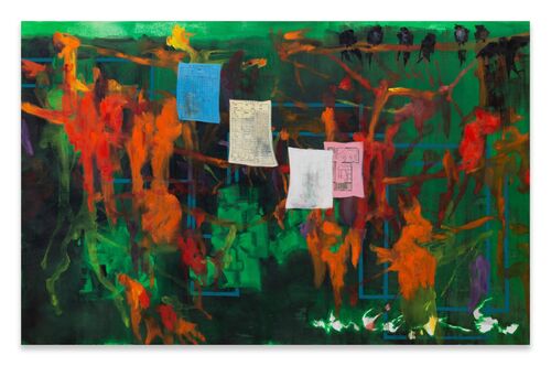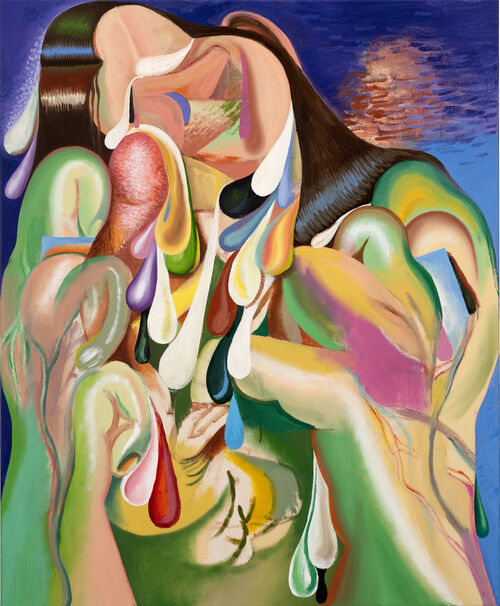 Having honed her craft under the mentorship of Neo Rauch, a prominent figure in the New Leipzig School, Schuldt has carved out her own space in the art world. Her participation in the acclaimed group exhibition “Now! Painting in Germany Today” in 2019, which took place across four prestigious German museums, solidified her reputation as a rising star in contemporary art. Now, for her exhibition with EIGEN + ART, Schuldt presents new works that continue her exploration into the tumultuous nature of emotion and offer a visceral experience of chaos and order, rebellion and transformation.