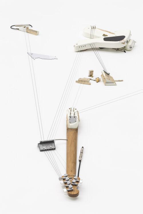 Now and then, Naama Tsabar breaks an electric guitar at her studio. With safety goggles on and blasting 1990s rock (ideally PJ Harvey), she tears a store-bought instrument into shreds. There are a few limitations: The size of her Brooklyn workspace dictates how far the wood and metal parts fly, and she must be alone. “This is a moment of release that I have to do privately,” Tsabar, who was featured in The Artsy Vanguard 2018, told Artsy, of this adrenaline-fueled act that creates the raw materials for her sculpture series “Melodies of Certain Damage.” “It is not about the moment of breaking,” she added.