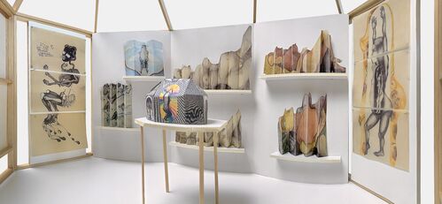 Sandra Vásquez de la Horra is always drawing. “I have tables everywhere,” the artist said in her sunny Berlin studio, which, true to her words, is filled with huge drawing tables. “It’s like a diary,” she said, referring to her constant scribbling. Her works on paper are scattered across the space: hanging on walls, or laid out in unfolded versions of the accordion-style leporello format she favors. Yet another table holds a wax bath that the artist uses to coat many of her works in thin, skin-like layers.