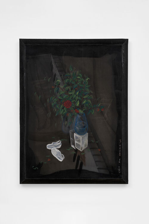 Still life with a Winter Hardy Camellia Tree and Studio Shoes, Over a Tail Sweeping over Piano Keys, 2022