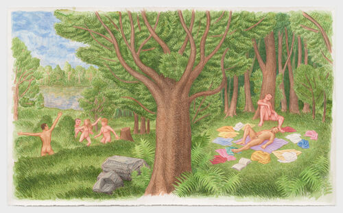 Inspired by the idyllic queer community gathering place of Fire Island, New York, Xavier F. Salomon highlights artists who live, work, spend leisure time, or otherwise engage with this historic community. Salomon chose a balance of artists who address the representation of the human figure as well as the natural landscape, including Jonathan Lyndon Chase, Kyle Coniglio, TM Davy, Nash Glynn, Jenna Gribbon, Doron Langberg, Thomas McCarty, Elle Pérez, Paul Mpagi Sepuya, and Stephen Truax.