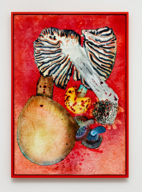 “Travis Boyer’s work embraces the sensuality of gay male sexuality, and celebrates it on a symbolic level using iconography such as mushrooms, candles, shellfish, and the galaxy at large. His work is the result of a culmination of decades of work using dye and fabrics like velvet; he has a virtuosity over materials that we don’t get to see explored very often.” —Bogia