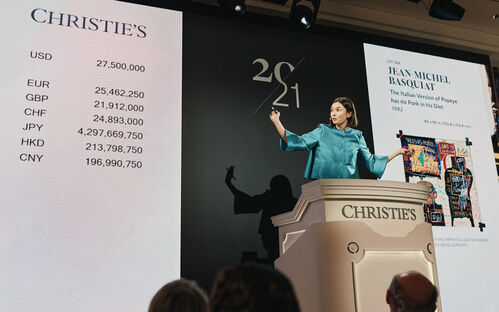 On May 14th, as part of Spring Marquee Week, Christie’s held its Evening sales at New York’s Rockefeller Center. The event included the Rosa de la Cruz Collection Evening Sale and the 21st Century Evening Sale, which amassed a combined total of $114.66 million (all prices include fees). The auction attracted bidding from attendees in person, over the phone, and online, despite a hack on the auction house’s website last week.
