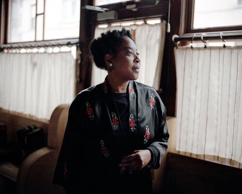 Gbaguidi sees herself as a contemporary griot—a West African storyteller who preserves community history—using her art to archive and transform traumatic historical legacies into collective memory. In this way, the artist sees her work as the connection between her ancestors and the present.