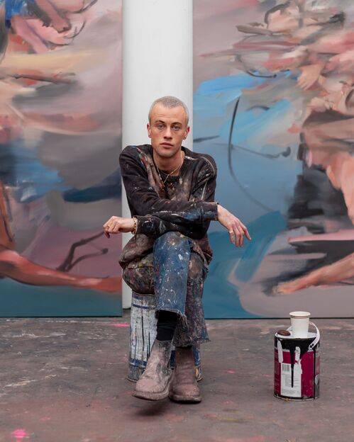 Born in 1994 in Kent, England, Rouy graduated from Camberwell College of Arts in London in 2015. His art is known for its exaggerated and distorted representations of the human figure, which he uses to explore themes of identity, desire, and alienation. His work is featured in several prestigious collections, including the ICA Miami and the X Museum in Beijing.