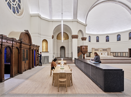 On May 18th, Detroit’s East Village neighborhood will celebrate the grand opening of the Little Village, an innovative arts and community campus including The Shepherd, a historic Romanesque-style church that will create a new exhibition space, and also house a branch of artist Asmaa Walton’s Black Art Library and the headquarters of McArthur Binion’s Modern Ancient Brown Foundation.