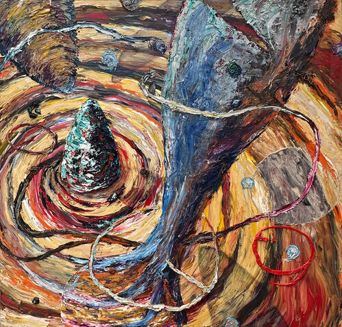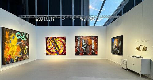 Riding the wave from the Venice Biennale—where Ruby’s work was featured in “Janus,” the inaugural exhibition at Berggruen Arts & Culture’s Palazzo Diedo—this solo booth is a bold continuation of the artist’s exploration into the forces of nature and human influence. The “TURBINE” paintings are particularly evocative due to their imposing scale and a maelstrom of color. Each work is rich with influences, from Futurism to literary allusions that surface in titles. For instance, TURBINE. TYGER TYGER BURNING BRIGHT (2024) evokes William Blake’s 1794 poem “The Tyger.”
