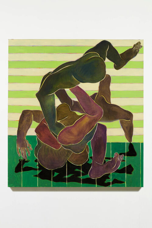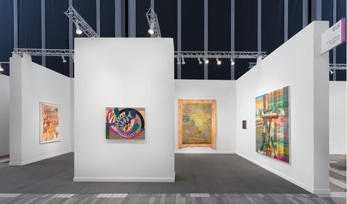 “We brought to Frieze an expressive balance between established and new artists from our program,” noted Alex Gabriel, the partner-director of São Paulo and Rio de Janeiro gallery Fortes D’Aloia & Gabriel. Indeed, this booth is a broad display that contains no shortage of standouts. Among them are a series of 2023 paintings by the gallery’s newly represented artist Pélagie Gbaguidi (priced from $20,000–$50,000). The Beninese artist embeds colonial and postcolonial themes into blurry, vivid depictions of Black bodies that spill across their canvases.