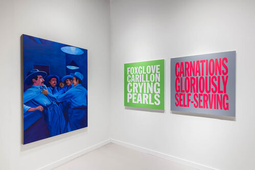 “We wanted to emphasize different exhibitions and moments that are happening for [our] artists at the minute, in New York, Venice and beyond,” said partner Malik Al-Mahrouky. And there are moments aplenty in this presentation. Noche Americana-int.Cantina (2024), a painting by Ana Segovia, whose works can currently be found in the Venice Biennale’s main exhibition, is a sterling example of the artist’s penchant for representing cinematic scenes with mysterious context. It stands opposite a sprawling wiry work by Kosovan artist Petrit Halilaj, whose monumental sculptures from the same body of work, titled “Abetare,” occupy the Metropolitan Museum of Art’s rooftop commission.