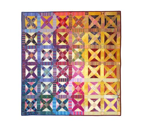 It wasn’t until 1997, when a book about quilting fell into the hands of Guatemalan artist Priscilla Bianchi, that she fully devoted herself to the textile technique. A home seamstress for nearly 40 years, Bianchi worked day jobs as a preschool teacher and later as an industrial psychologist before retiring to pursue her passion for textile art. Today, her intricate, polychromatic quilts are the spotlight of “The Guatemalan Fabric of My Life” at Monterroso Gallery. “Many thought I had gone mad, but I was fascinated when I realized that art quilts brought together everything that I love: fabrics, colors, sewing, art, design, creating with my hands, and being original,” said Bianchi in an artist bio.
