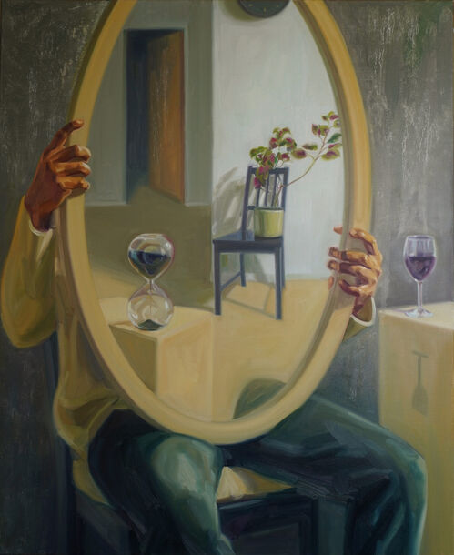 At Ed Cross Fine Art in London, Ekube’s exhibition “Memories are we are memories” uses mirrors as a motif to interrogate the impact of perception and memory on identity. This collection of new works features obscured figures in domestic settings, each holding a mirror that reflects empty spaces. Memories are we are memories #23 (2024) features an hourglass in an empty room. In other works, he captures faceless individuals holding mirrors towards the viewer—symbolizing the fleeting and often distorted nature of memories.