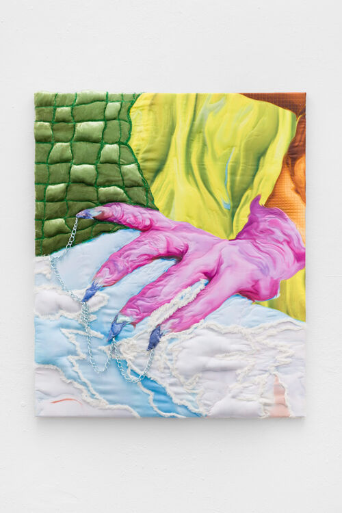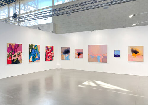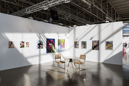 This “work-ation” atmosphere overflowed into the booths, where conversations seemed low-key. With prices up to €5,000 ($5,348), Ballon Rouge’s booth focused on figurative painting and textile works by solely queer artists (the gallery specializes in women and LGBTQ+ artists) in bright shades, a style that was prevalent across the fair: “We realized we can go brighter and a bit flashy here,” the pair added.