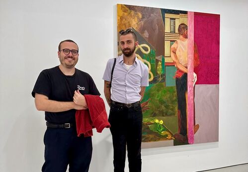 The couple’s romantic and professional lives overlapped early on, when Seresin penned an essay for the group show “Motherboy,” which Wielebinski co-organized in 2023 with curator Stella Bottai at Milan gallery Gió Marconi. Though they have separate practices—Wielebinski focuses on the performance of masculinity in his multimedia artworks, while Seresin studies our complex relationship with desire—their ideas often converge around language, they explained. “Our mutual interest in self-expression has helped me solidify my vision and help translate my focus into a language,” said Wielebinski. “I do appreciate that we both have a child-like love, maybe in an obsessive way, about an idea.”