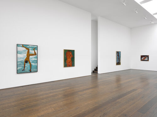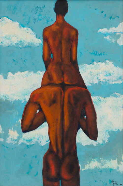 Those qualities are on view in the new exhibitions. Featured works by Geoffrey, created in New York from the late 1970s to the 2000s, run the gamut of city life. They move from the quiet intimacy of domestic scenes in works such as Interlude (1986), a painting peeking through an open door into a bedroom with a naked couple, to the electricity of nightclubs, as seen in Dancer in Yellow (2006). Meanwhile, works by Boscoe—drawn principally from the 1990s and early aughts—were made in Trinidad, to which he returned in 1970, and often feature elements of the natural world. Paintings such as Male nude on yellow blanket (not dated) are particularly tender in their combination of soft, luminous colors and gentle brushwork. They convey a sense of intimacy, where the viewer feels alone with the subject.