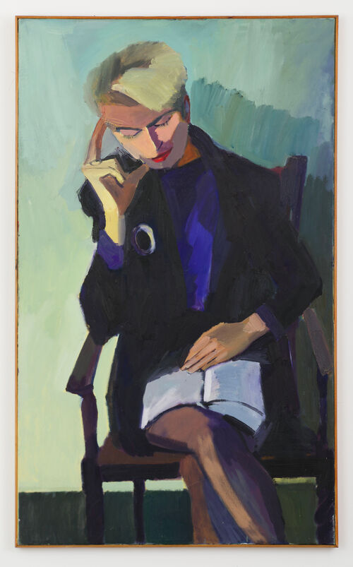Yellow stripes of a building in Secure Vault (2020–21) run into the natural markings of grass beneath it, for instance, and a red structure stands stark against the soft washed horizon in the graphic landscape Robeen (a road village in County Mayo) (2020). In these scenes, Pohli exercises a lively, free brushstroke, enjoying the “gentle elegance” that a tempered paint of pigment, egg yolk, and water affords.