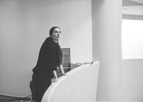 Holzer’s seamless integration of blunt remarks about power into public environments reaches new vertiginous heights at the Guggenheim Museum’s “Light Line.” The centerpiece, an installation of LED lights climbing up the full ramp of the museum, features a stock ticker–like flow of aphorisms addressing power dynamics, warfare, surveillance, and existential anxieties. In this expanded restaging of a 1989 installation, some are recycled from Holzer’s “Truisms” (1978–87) and “Inflammatory Essays” (1979–82), others are newly generated with artificial intelligence. Regardless, the authorship of the phrases is left intentionally ambiguous—a throughline for Holzer, whose artistic practice was initially centered around anonymity. Such a momentous restaging of one of Holzer’s most ambitious projects reminds us of her continued relevance: “Light Line” immerses the viewer in a vertigo-inducing spectacle. As Holzer’s reputation has expanded, so too have the scale and complexity of her work.