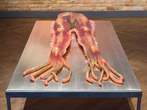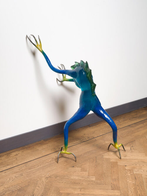 At KÖNIG GALERIE in Berlin, Questionmark’s recent solo exhibition “The Unborn Patient” considered similar themes of surveillance and control over non-normative bodies. In performances, silicone sculptures, and paintings of dragon-like beasts, the artist explores models of fluidity in the face of what she calls “a failing biological paradigm.”