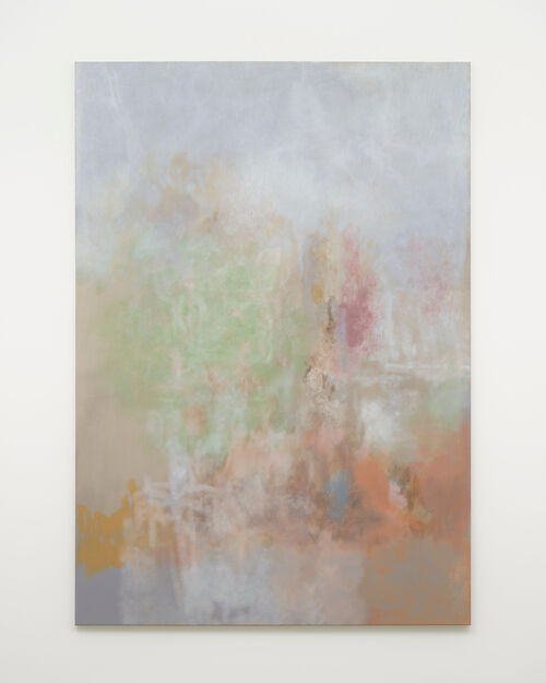Inspired by the moment between sight and recognition, Hiroto Tomonaga invites the viewer into a liminal world where vision and perception are disjointed. Working on large-scale canvases, the artist uses thin layers of oil paint, tempera, and wax to accumulate texture and evoke movement. The results—featured in a recent solo show at Tokyo gallery KOSAKU KANECHIKA—feel untethered from the physical world, as if Tomonaga’s abstract forms exist only behind a shimmering, translucent veil.