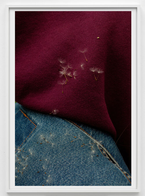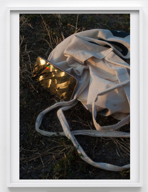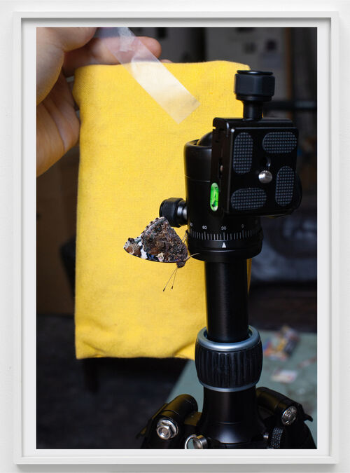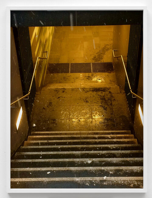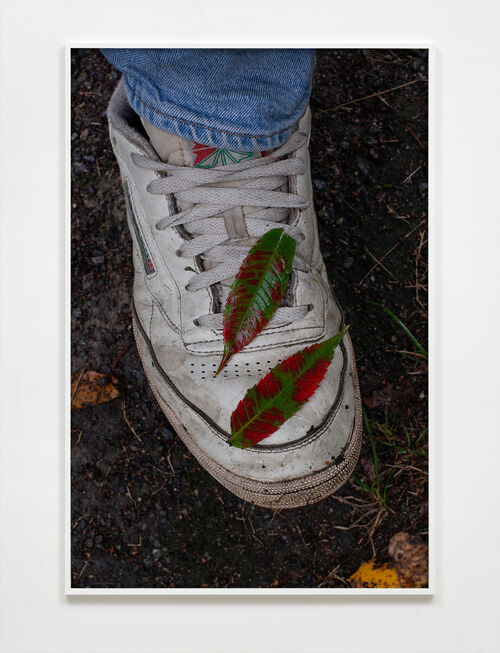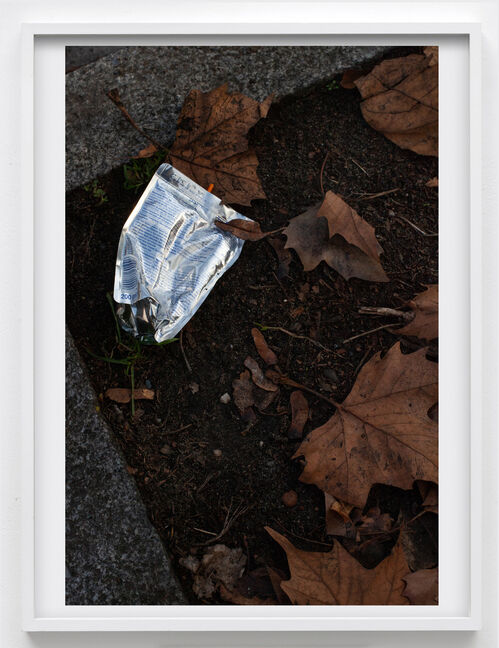 Hutchinson’s frequent subjects include strangers, street trash and flotsam, and architectural details from his travels. Serendipitous moments—such as in Schmetterlinge, yellow backdrop (2019), where the artist memorializes a butterfly lingering on his tripod—highlight his keen eye for beauty in uncommon places. Oscillating between solemnity and hopefulness, Hutchinson’s images reflect the influence of German photographer Wolfgang Tillmans, for whom Hutchinson worked as an assistant for many years.