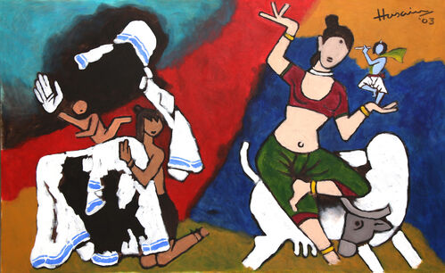 Known for his Cubist-influenced, vividly colored paintings, Maqbool Fida Husain is regarded as one of India’s foremost artists of the 20th century. He achieved significant recognition throughout his career, representing his country at the Venice Biennale and the São Paulo Biennale in 1955 and 1972, respectively.