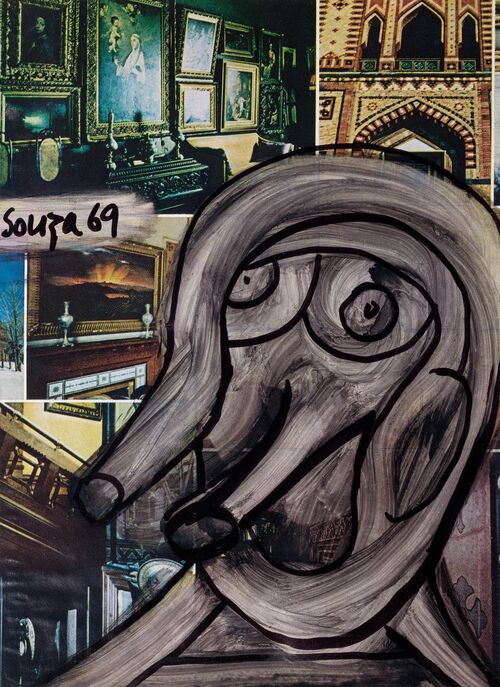 In 1948, Souza displayed work at the landmark “Exhibition of Indian Art” at London’s Royal Academy of Arts before settling in the city to seek patronage. He went on to have his first international solo exhibition at Gallery One, London, in 1955. Souza’s travels across Europe culminated in a profound encounter with Pablo Picasso in Paris, marking a significant moment in his career.
