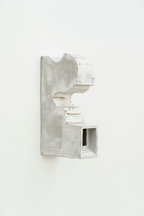 An MA graduate in visual poetics at the University of São Paulo, da Mota is inspired by the Brutalist architecture of her home city in her pale canvases with sharp geometric shapes. Meanwhile, Pauwels employs ordinary materials like cardboard and fiberglass to create futuristic sculptures, like the white abstract Passe muraille #3 (2023). Elsewhere, Vingerling, who lives and works in Amsterdam, renders simple landscapes stripped of the clutter of daily life, seeking emotional purity in the spaces she attempts to capture.