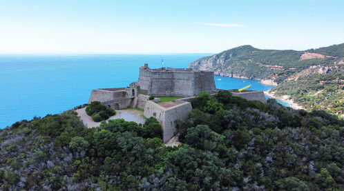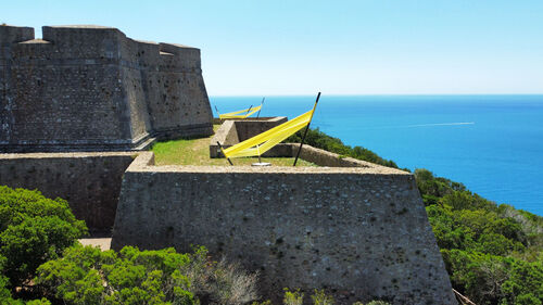 The small Tuscan town of Porto Ercole is famous as the burial place of Caravaggio, but it has much to offer besides. Located on a hilly peninsula jutting out into the azure blue of the Tyrrhenian Sea, it’s a spectacular location, and also home to the Orto Botanico Corsini, a botanical garden housing over 1,500 different species of plants that regularly invites contemporary artists to participate in site-specific projects.