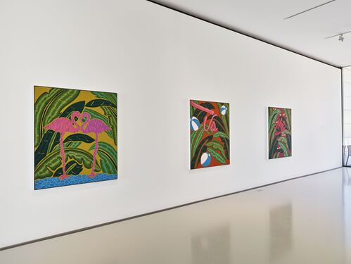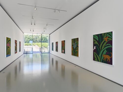 One of this summer’s highlights is a solo show by acclaimed Californian artist Joel Mesler, whose bold canvases often use bubbly, graphic text as a centerpiece, drawing on his own autobiography in deceptively fun and playful compositions. Vividly-colored backgrounds, often featuring patterns of tropical leaves, combine with elaborately rendered typography to create an off-kilter Pop Surrealism that has become his trademark. In this current exhibition, Mesler will present a series of twelve new paintings inspired by the Provençal landscape, its vibrant sunsets, and inhabitants. Although outwardly cheerful and summery these works also touch upon more complex and weighty emotions, recalling the artist’s childhood experiences in California.