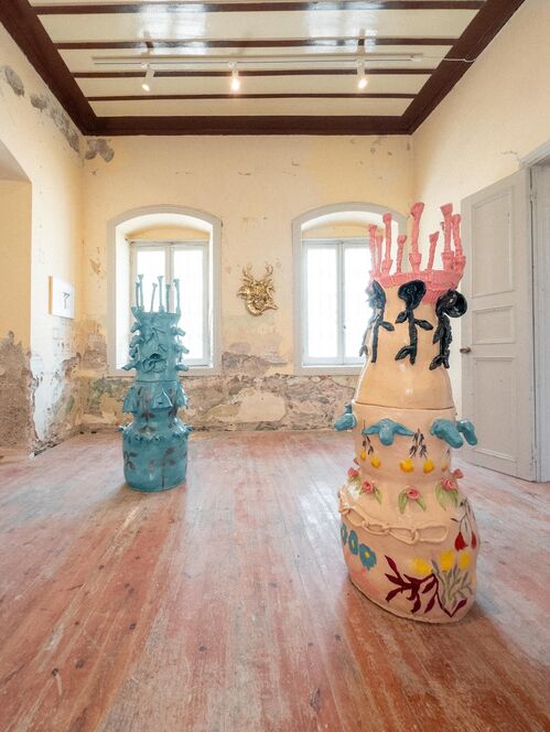 Organized by Turkish art platform Perasma (which stages ambitious exhibitions in unexpected settings), “All Things Become Islands Before My Senses” is a group show of site-specific installations by 17 artists. Spread across six key locations—including iconic buildings dating from the period of Italian occupation such as The Cinema Roma and The Old Barracks—the exhibition explores the relationship between time, water, and the island’s history. These complexities, it suggests, can generate both beauty and adversity in equal measure. Featuring new and existing works by artists including William Kentridge, Goshka Macuga, Cevdet Erek, Maryam Turkey, and Lindsey Mendick, the exhibition presents Leros as a nexus where past and present intersect, overlaid by history, mythology, fantasy, ghosts, and reality.