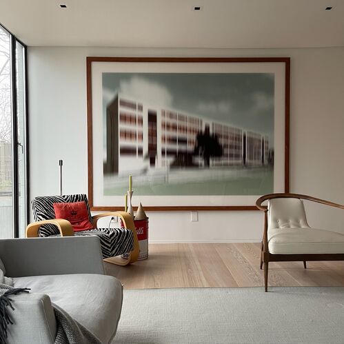 A formative moment for the couple came when they were serendipitously hired to design a space for fellow Canadian and seasoned art collector Bruce Bailey, who then introduced Yabu and Pushelberg to the nuances of purchasing art. He pointed the collectors to work by Canadian artists, such as four works from John Massey’s “Modern Waiting Area” series from 1997–99, which they acquired from Olga Korper Gallery in 1999. “When you’re young, and you’re curious about art, but you don’t know anything about it, it’s always good to have a mentor, somebody that can show you things so that you start to get your feet wet and you start to feel what you what responds to you,” said Pushelberg.