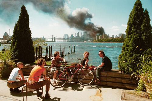 Hoepker’s work covered a broad spectrum of subjects, including political events such as life outside the Berlin Wall and cultural figures like Muhammad Ali. He is perhaps best remembered for his photo View from Williamsburg, Brooklyn, on Manhattan, 9/11 (2001), which captured a group of young adults who appear to be relaxing with the burning Twin Towers in the background. The image, not published until five years after it was taken, became a subject of long-lasting discourse regarding the role of photography in tragedy.