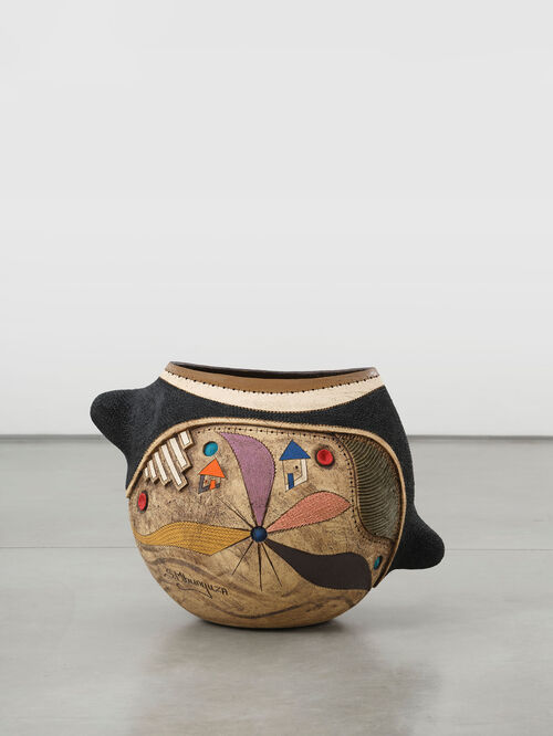 Born in 1989, Mbunyuza studied at Walter Sisulu University in South Africa, followed by several residencies, including A.I.R. Vallauris in Vallauris, France, in 2017. There, he met fellow ceramist Stuart Asprey, an undergraduate coordinator at the University of Oklahoma, who persuaded Mbunyuza to apply. Since earning his MFA there in 2021, Mbunyuza has presented solo exhibitions with Marianne Boesky Gallery in 2021 and Mindy Solomon Gallery in 2023. Now an artist in residence at the Archie Bray Foundation in Helena, Montana, Mbunyuza has been on a meteoric rise since graduating.