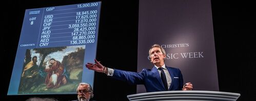 The work—which sold within its presale estimate of £15 million–£25 million ($18.75 million–$31.25 million)—was the top lot of Christie’s Old Masters I sale, which achieved an overall total of £43.59 million ($55.1 million). Also taking place last night at the auction house as part of its Classic Week series was The Exceptional Sale, which totaled £7.2 million ($9.1 million). All prices include fees.