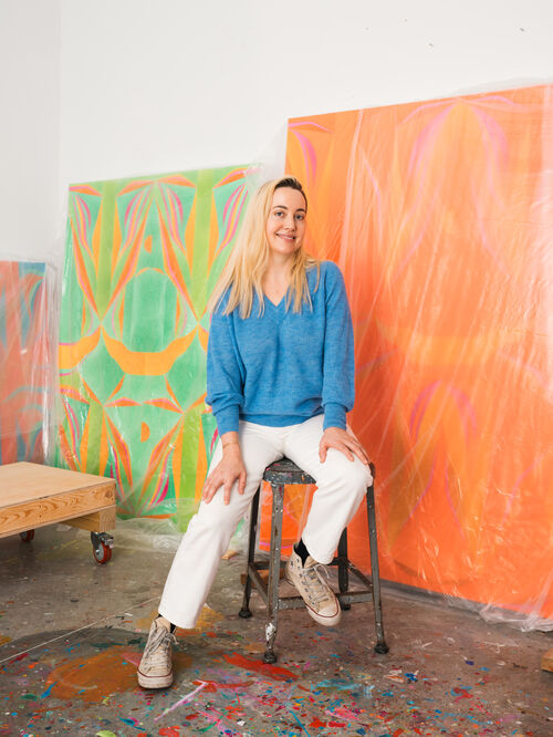 Brooklyn-based painter Margaux Ogden will enter mega-gallery territory with her inaugural exhibition with White Cube, on view online from September 26th through November 7th. Her paintings, characterized by intricate geometric patterns, draw from a repertoire of bright, abstract forms that have evolved over years of repetition.