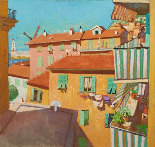 Although Gillies never formally belonged to the Scottish Colourists, he was significantly influenced by their work, particularly that of S. J. Peploe and Denis Peploe, whose works are included in the show. The exhibition explores the impact of these artists’ work on Gillies, as well as the St. Ives School, a mid-20th-century artists’ colony in Cornwall, England, which fostered artists like Wilhelmina Barns-Graham (also included in the “Modern Masters” show).