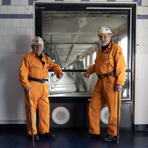 The exhibition “Before and After Coal” is a collaborative project between Bird, the National Galleries of Scotland, and mining communities from Fife, East Ayrshire, and the Lothians. The new series of work on display showcases participants from these communities posing for portraits in front of enlarged versions of the original photos, wearing orange miner’s boiler suits and helmets. The exhibition focuses on family, community spirit, history, and the important documentary work by Rogovin.