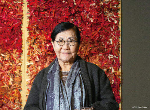 Meanwhile, as a founding member and the first president of the Korean Fiber Arts Association, she helped launch the Korean Fiber Art Biennale in 1984. Once she retired from teaching in 1997, Lee opened Gallery Wooduk in 1997, continuing her support for young, experimental artists, much like herself.