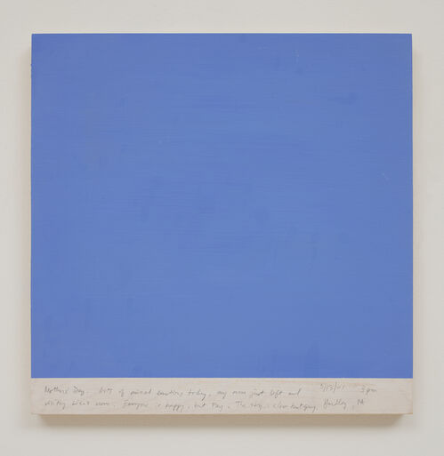 Pruitt’s project, in turn, evokes an ongoing series by San Diego–based artist Byron Kim, who’s painted a swath of the daytime sky once a week consistently since January 2001. These “Sunday Paintings” all pair the artist’s upward view with a succinct entry encapsulating life that week, from his kids’ soccer games to his studio chores. Kim has presented selections from this series in several shows, most recently at James Cohan Gallery in 2018.