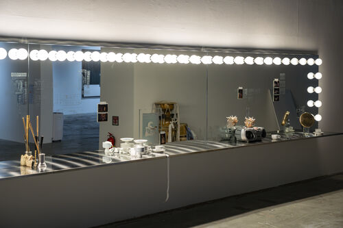 Born to a Korean mother in Germany, Mann often explores the history of Korean immigration to their home country in their work. Another installation in the Biennale’s main location, a long dressing room–style mirror titled objects of the wind (2024), is a memorial to the many Korean nurses who immigrated to Germany in the late 1960s, bringing the Korean folk drumming tradition of pungmul with them. Jindo buk drums, alongside feathered fans and stainless steel instruments, adorn the monument.