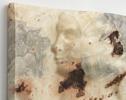 Mendes comes from a long line of German rabbis, and their grandmother was a Holocaust survivor. They traveled to Germany to work in isolation on these shadowy works in both the Bavarian Forest and the Elbe Valley (beloved by Romantic painters such as Caspar David Friedrich). Made with unusual mediums and techniques, such as marble powder and water marbling, these sometimes murky, shadowy works conjure an ambivalent image of the artist’s familial history of displacement from this land. They also subvert the history of Romantic landscape painting, which glamorized the natural world with depictions of sweeping vistas and was used to bolster the fascistic ethos of the Nazis.